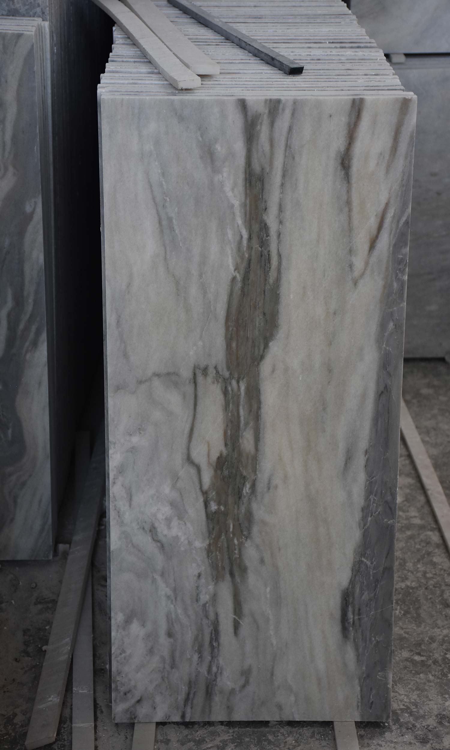 رنگ روشن و سطح شفاف با رگههای ملایم آبی یا طوسی